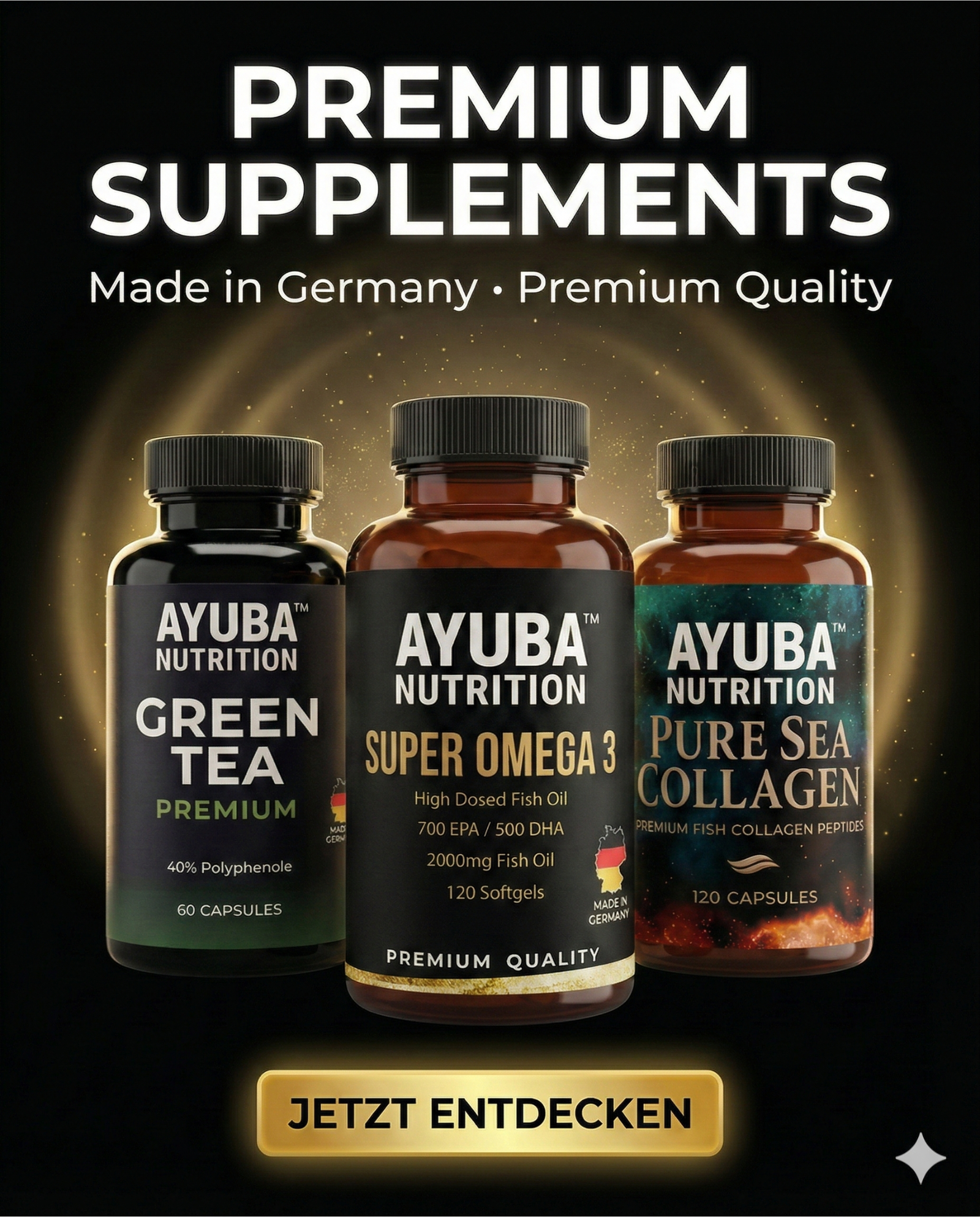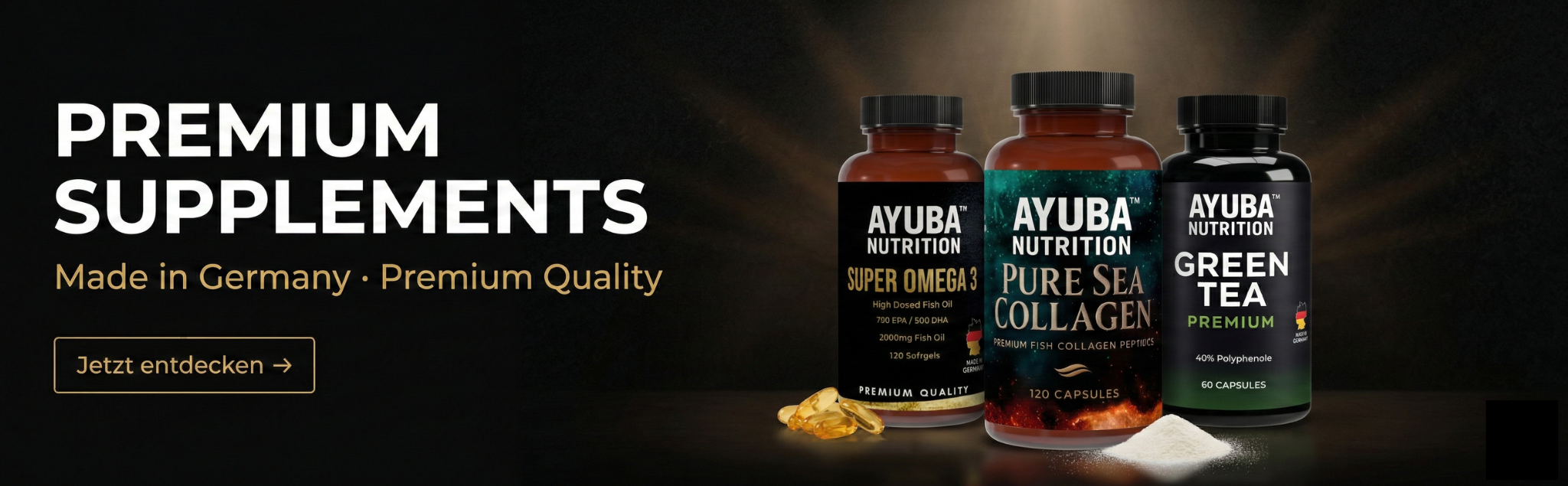 Ob optimale Gesundheit, effektiver Muskelaufbau oder mentale Klarheit im Alltag: Unsere laborgeprüften Premium Supplements unterstützen dich dabei, fokussiert durchs Leben zu gehen und deine körperliche Performance auf das nächste Level zu bringen.